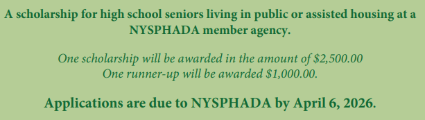 Scholarship for high school seniors living in public housing. Applications are due April 6th 2026. Contact THA for more information or click here to download the application